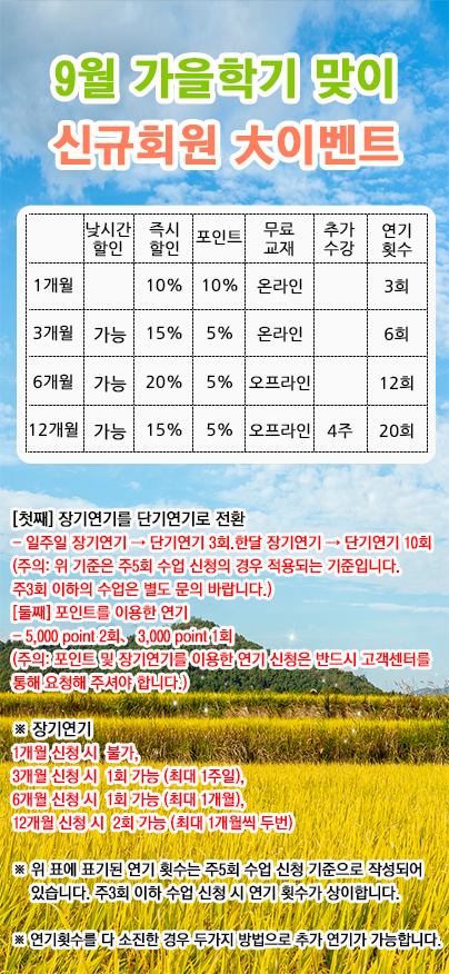 9월 가을학기 맞이 신규 프로모션